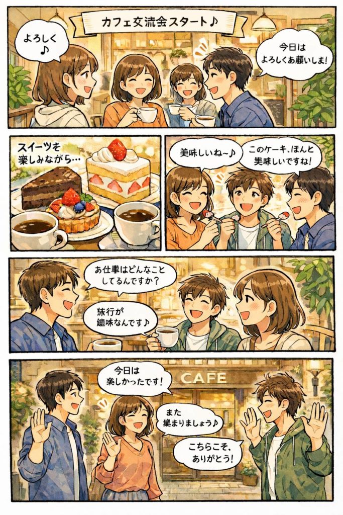 カフェでお茶を飲みながら、友達作りや気分転換ができる交流会。